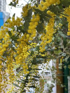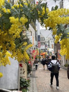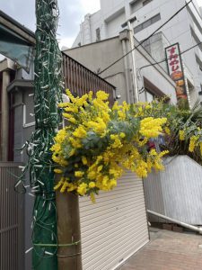 ミモザは3月8日国際女性デーのシンボルでもあり、花言葉は「感謝」。町田ターミナル商店街にいらしてくださる皆様にエールと感謝の気持ちを込めて・・・