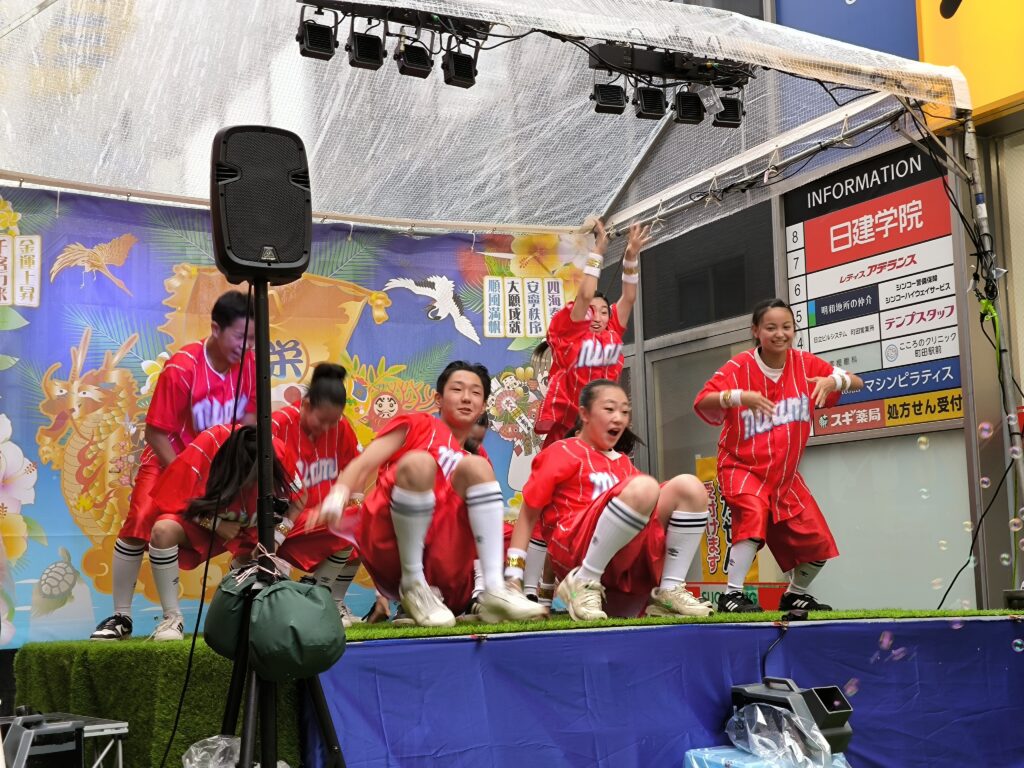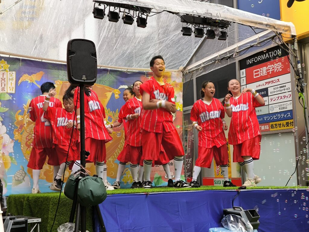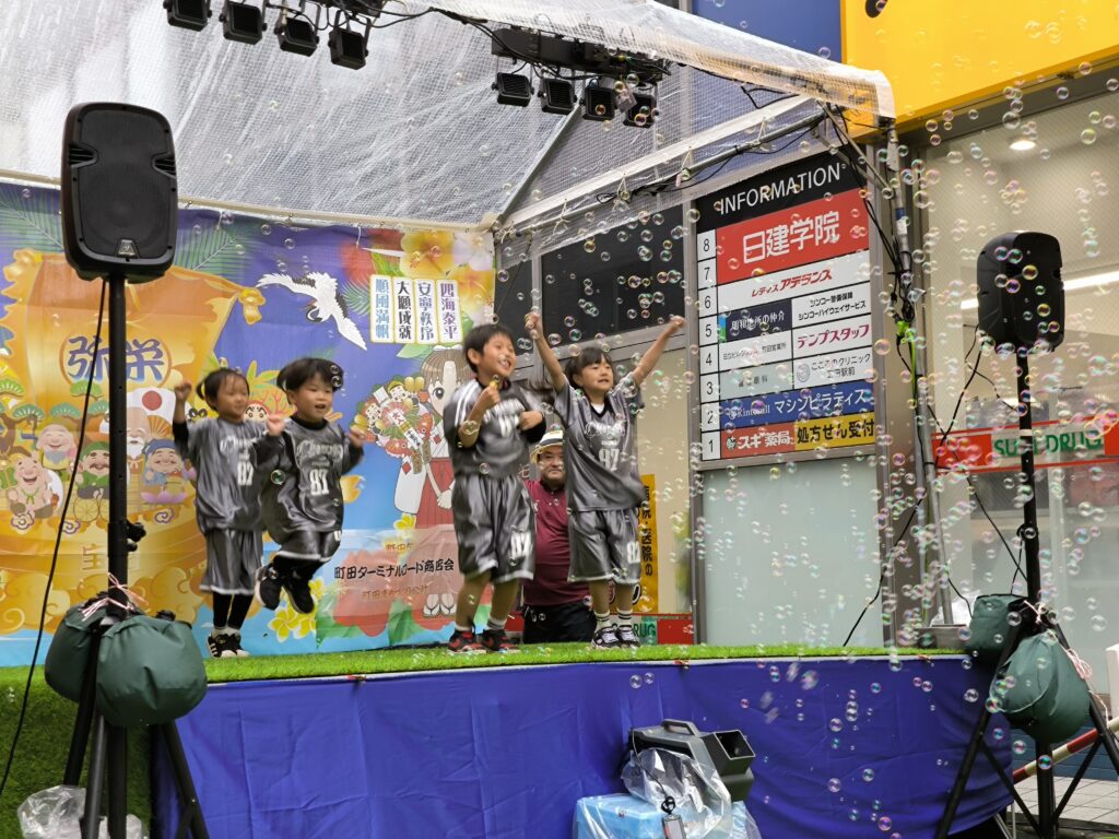 地元町田で活躍する子どもたちの元気いっぱいのパフォーマンスが会場を盛り上げました。雨の中でも多くの観客が応援し、大きな拍手と歓声に包まれました。