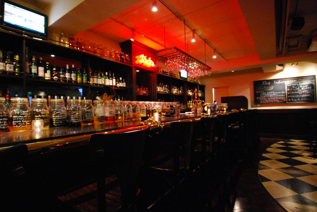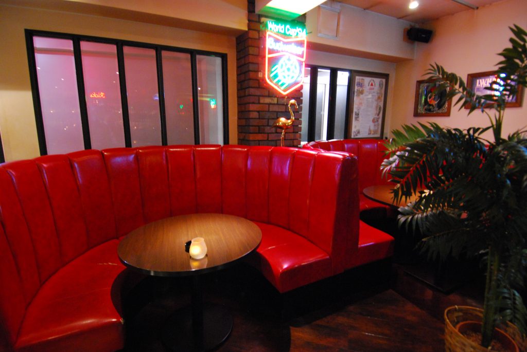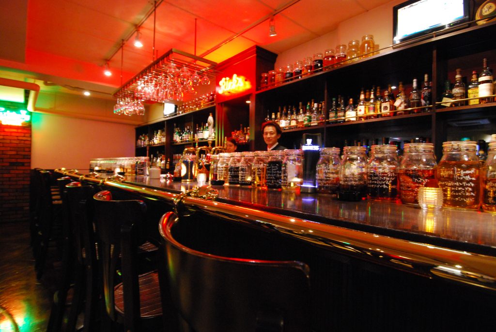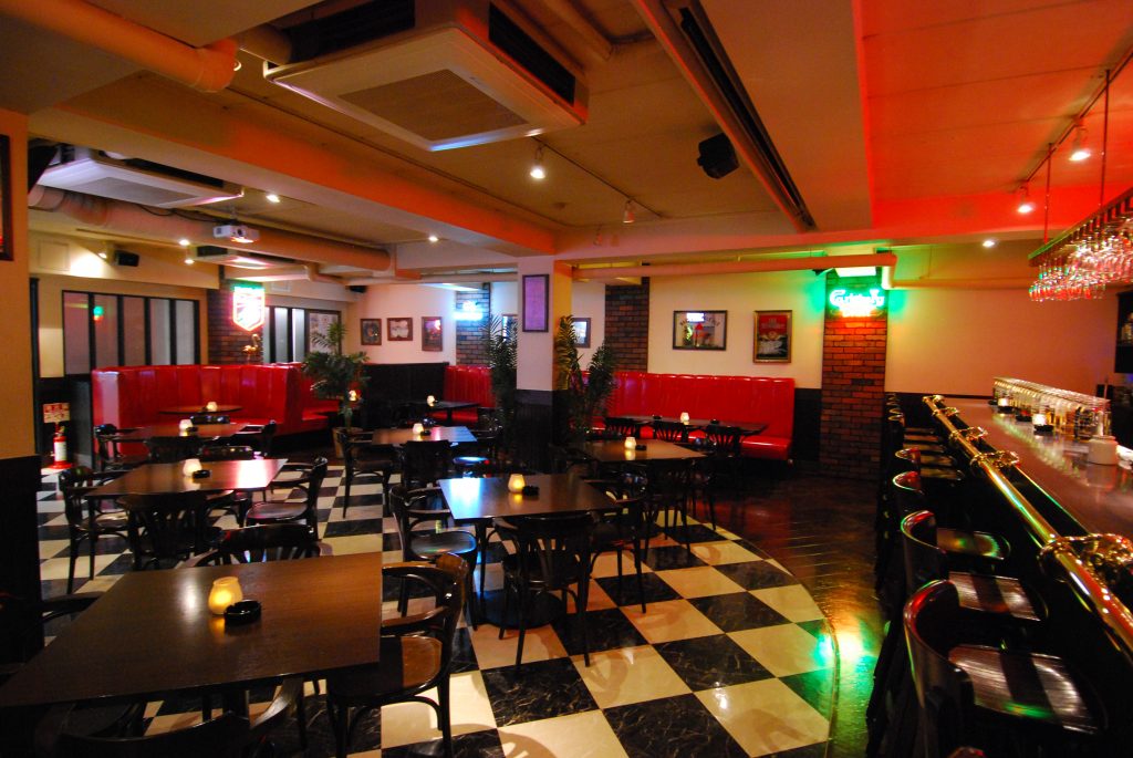 60席の広い店内に7メートルの長いBARカウンター、雰囲気の良いブース席、ビリヤードやダーツマシン、120インチの昇降式大型スクリーンでスポーツ観戦など
