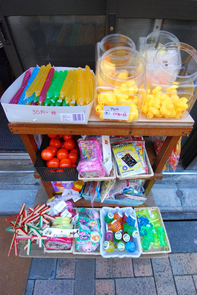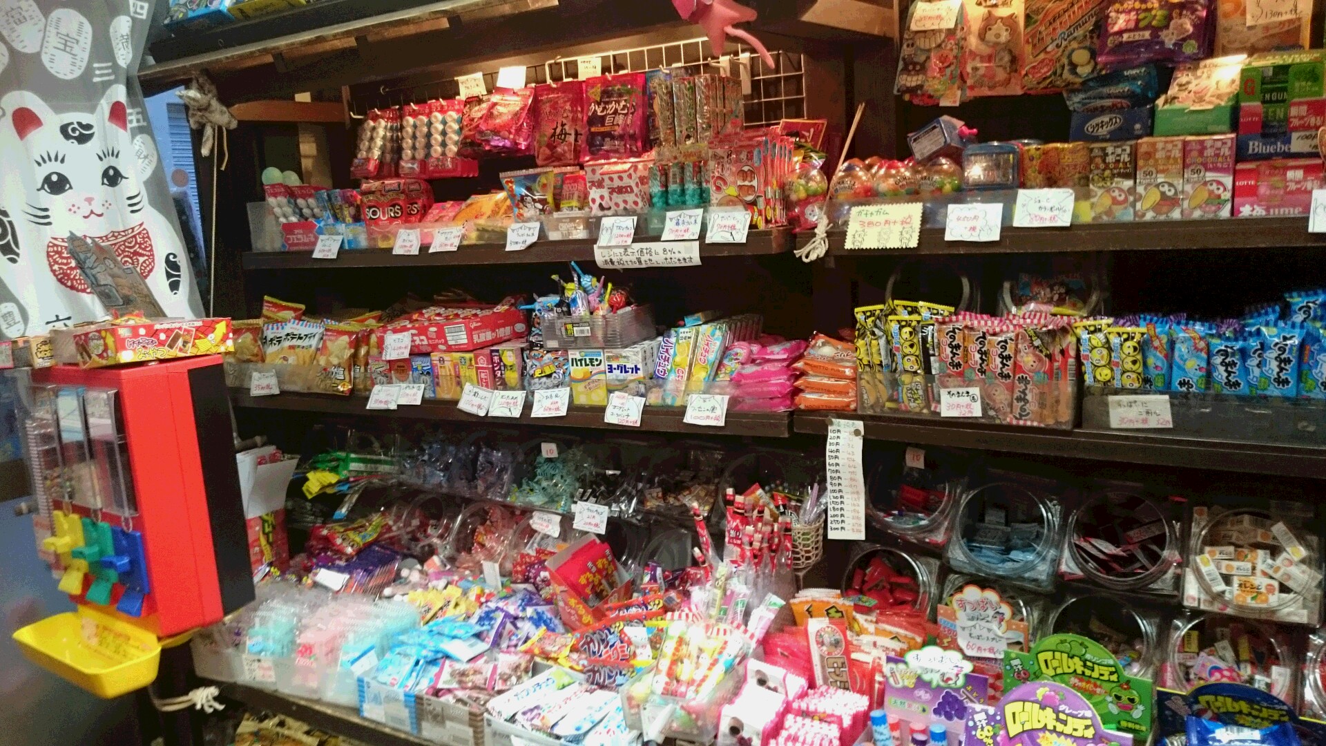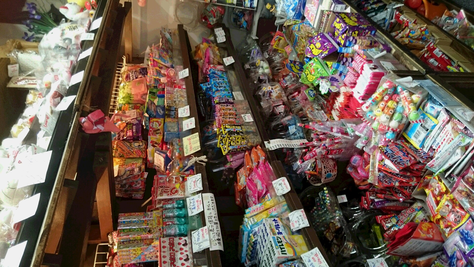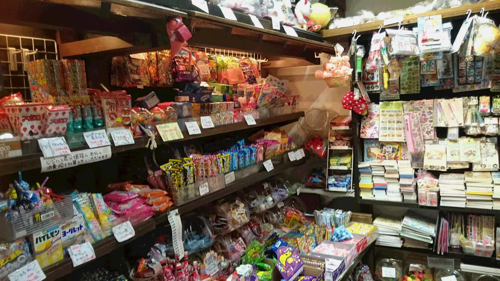 - 昔懐かしい駄菓子と現代のお菓子、まねき猫やおはじき、メンコ、羽子板にコマなどの季節のおもちゃ、キャラクター文具など、懐かしい物と今流行りの物と取り揃えております。海外へのお土産にも重宝していただいております。